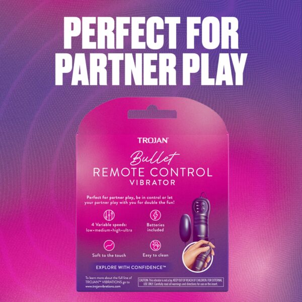 Trojan Vibrations Bullet Personal Massager gives you multi-speed vibrations that let you vary the speed and explore. Trojan’s most powerful vibrator has four variable speeds: low, medium, high and ultra. This personal massager is perfect for solo or partner play. You and your partner can enjoy multi-speed stimulation with this high quality, soft-touch vibrator that is easy to clean. It also comes with two AA batteries so the fun doesn’t have to stop. Includes one Trojan Vibrations Bullet Personal Massager. From condoms to vibrators to lubricants, Trojan Brand is dedicated to delivering innovative, high-quality products that offer pleasure and protection. More Americans trust Trojan Brand than any other condom, for over 100 years, because we’re committed to investing in public health efforts to support sexual health. The Trojan Brand promotes a safe, healthy, and fun sex life.