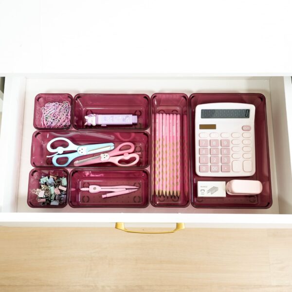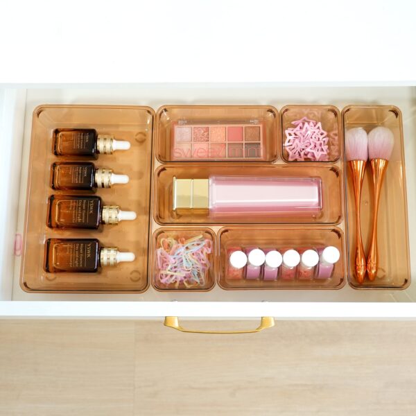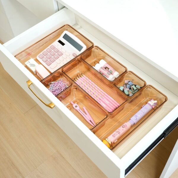 Love, love, love these clear plastic organizers for the drawers! They make my drawers look rich and elegant! A must have item for any home, from your bedroom, bathroom, kitchen or office! 5 star quality!