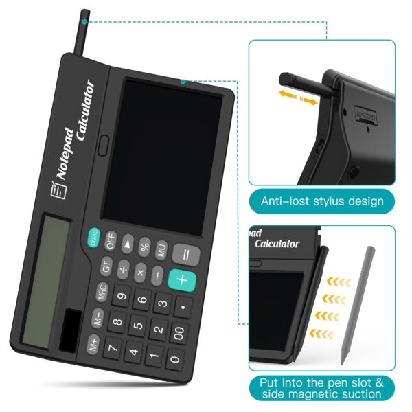 - Multifunctional Calculator with Notepad: Combines a calculator and writing tablet with a stylus for taking notes and calculations. No paper needed—boost productivity and save time by recording notes while you are calculating