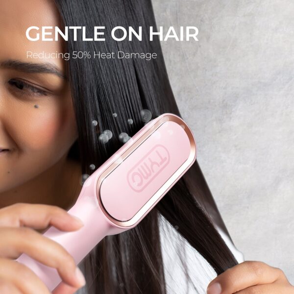 TYMO Ring Pink Hair Straightener Brush ? Hair Straightening Iron with Built-in Comb, 20s Fast Heating & 5 Temp Settings & Anti-Scald, Perfect for Professional Salon at Home. By gathering hair, our 3D heating teeth of TYMO RING let you achieve the same style with less heat for 50% less breakage, frizz, and flyaway.