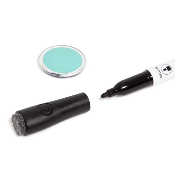 - Dry erase marker is included with a built-in felt eraser and a contoured marker cap shape which prevents the markers from rolling off any flat surface or tray
