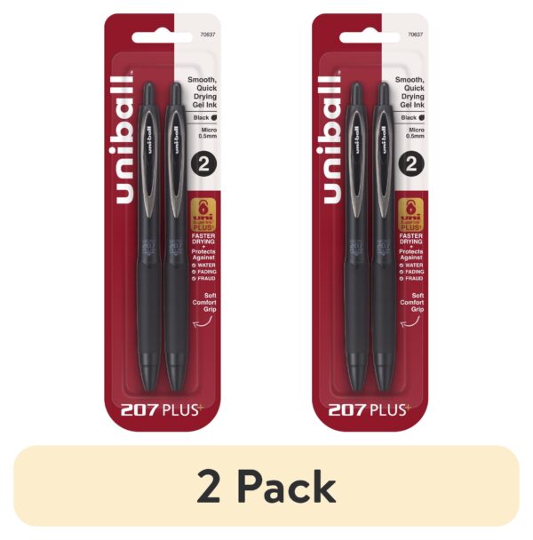 uniball™ 207 Plus+ Retractable Gel Pens, Micro Point (0.5mm), Black, 2 Pack