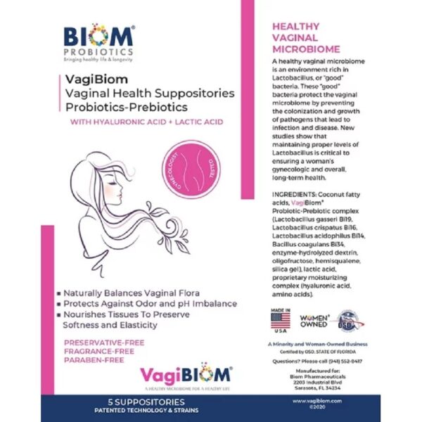 Vagibiom Biom Probiotics Vaginal Probiotic Suppository for Women, Fragrance Free in a Convenient 5 Count Suppository pack