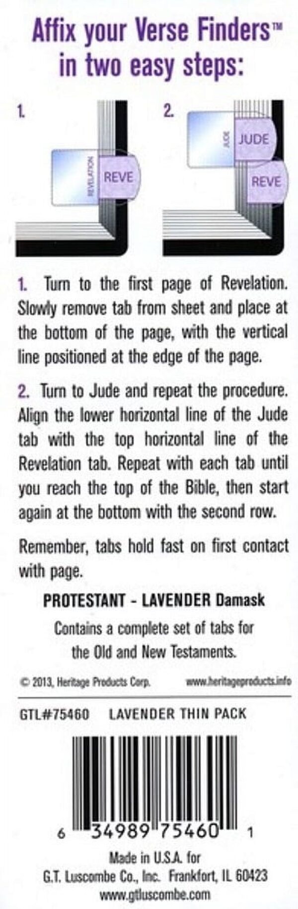 Easy to Install No Alignment Guides or Folding Required. Just Press and Stick. Tabs are Self-Aligning. Index your Bible in Minutes Not Hours. Attractive and Durable for Years of Trouble-Free Use. HORIZONTAL Style Reads left to Right. Compact 3/8 Des