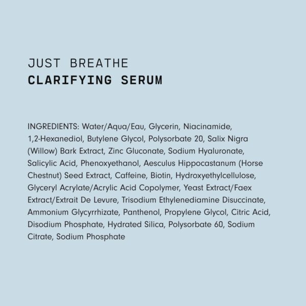 - Versed Just Breathe Clarifying facial serum balances skin and boosts clarity by controlling excess pore-clogging sebum