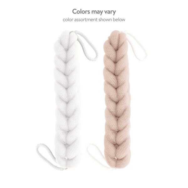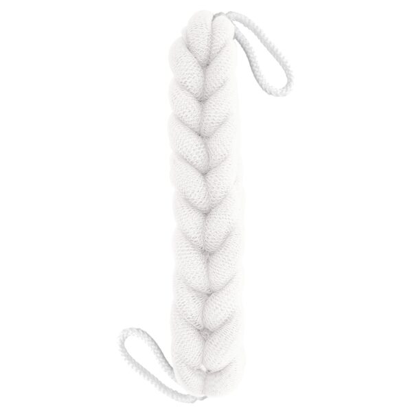 Helps you scrub and exfoliate hard to reach places , as well as it is strong and durable . Last long and doesn’t start to fall apart like others . I LOVE IT !!! Definitely buying a few more when time for replacement