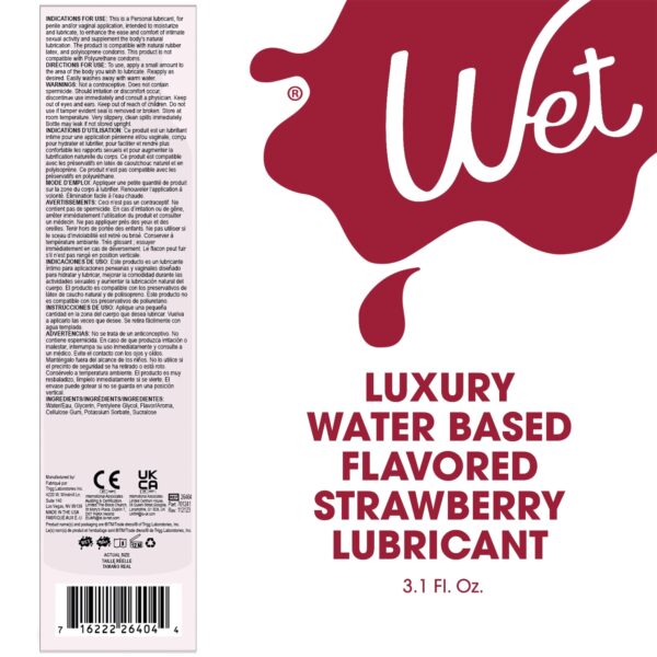 Wet Flavored Water-Based Lube, Luxury Edible Personal Lubricant, Delicious Strawberry Flavor, 3.1 fl oz