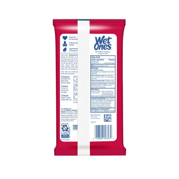 When soap and water aren’t on hand, reach for America’s #1 Hand Wipe* – Wet Ones Antibacterial Hand Wipes. Our cleansing wipes kill 99.99% of bacteria and make it easy to quickly wipe away dirt, messes and germs. Wet Ones Hand Wipes are pediatrician tested, hypoallergenic, and paraben-free. Our fresh scent is just the right amount of fragrance to leave you smelling and feeling clean, without being overpowering or lingering. Convenient, portable travel packs are designed to easily fit in your backpack, purse, glove compartment, desk drawer and much more, making cleaning on-the-go a breeze. The unique Wet Lock Seal retains moisture so wipes won’t dry out between uses and, since they are not liquid sanitizers, messy spills are a thing of the past. Take Wet Ones Antibacterial Hand Wipes wherever you go, so when life gets messy, you can get Wet Ones clean! (*Based on Nielsen scan data for 52 weeks ending 10/12/19)