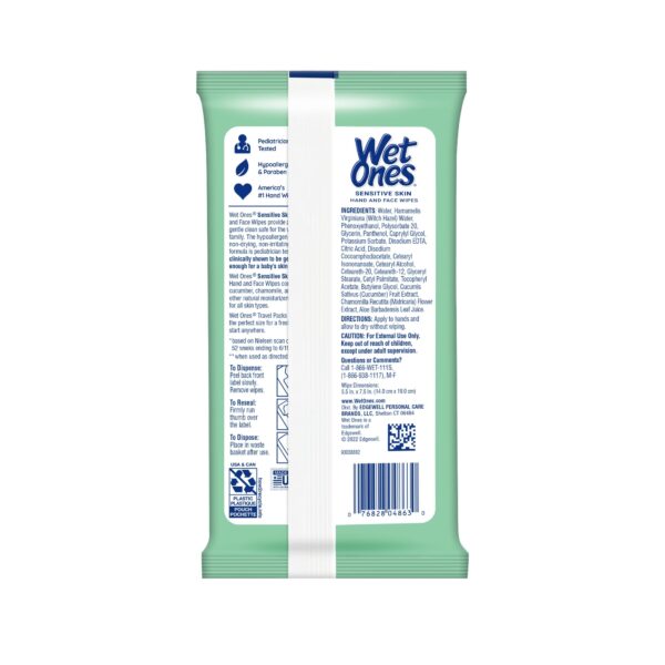 - Wet Ones Sensitive Skin Hand Wipes, Fragrance Free, 20 Ct Travel Pack, Hypoallergenic